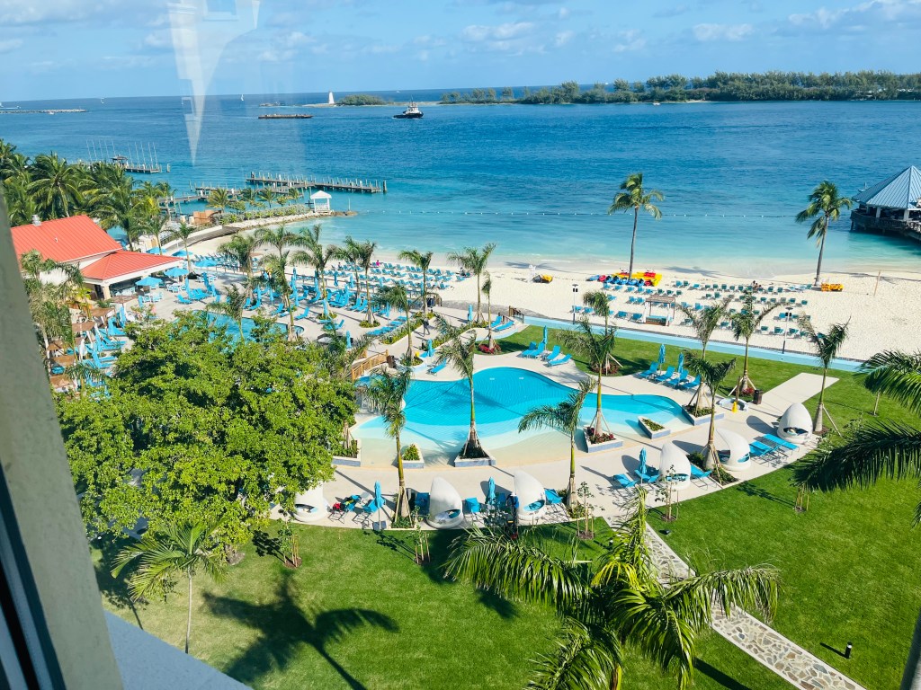 We enjoyed the rooms and location of the newly revamped British Colonial Hotel. The service was exceptional and the beach was beautiful. There are two pools, lots of umbrellas for shade and poolside service (what more could you ask for?). The beach is small but offers powdery white sand and is easy to swim in. The British Colonial is very close to the cruise port, making it a wonderful “daycation” for those seeking peace and quiet, great food and some sun while cruising.